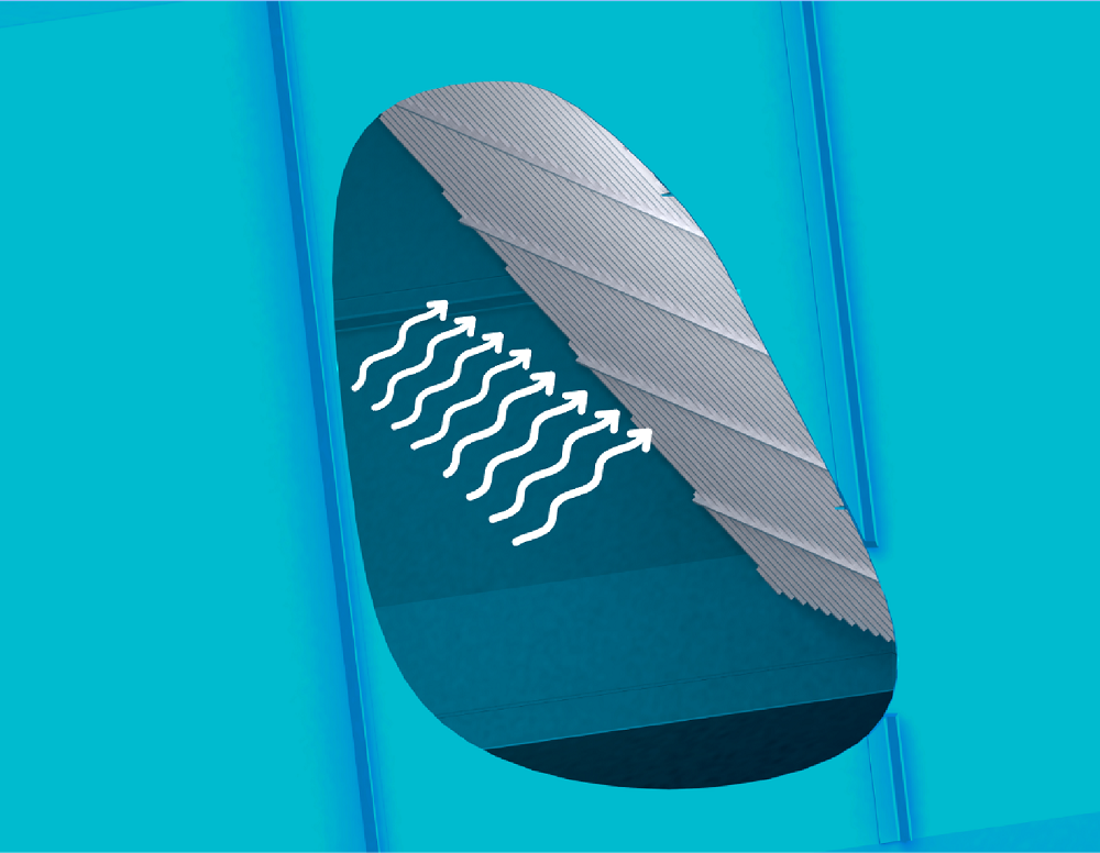 通過一級脫水室后,空氣中的液體含量大部分已經(jīng)被去除,少量的液體隨空氣進入到設(shè)有特殊設(shè)計的折流板二級脫水室。二級脫水室折流板采用流線型多波設(shè)計,具有脫水效率高,阻力小,結(jié)構(gòu)堅固耐用等特點。并且二級脫水室風道截面積巨大,空氣在此的流動速度可以降至2米/秒,以保證折流板發(fā)揮很大的脫水效率。經(jīng)過三層弧形擋板和折流板脫水后的空氣即可通過煙囪排放。